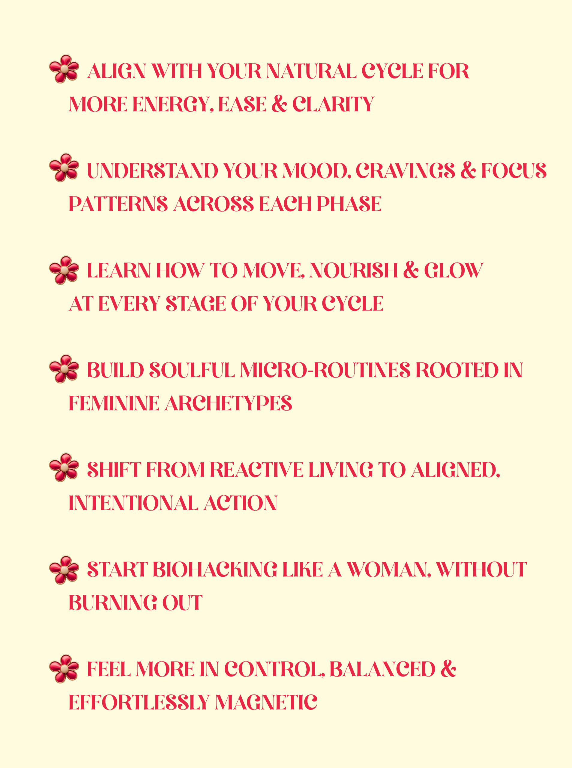 * Optimize your feminine energy, biology, and radiance