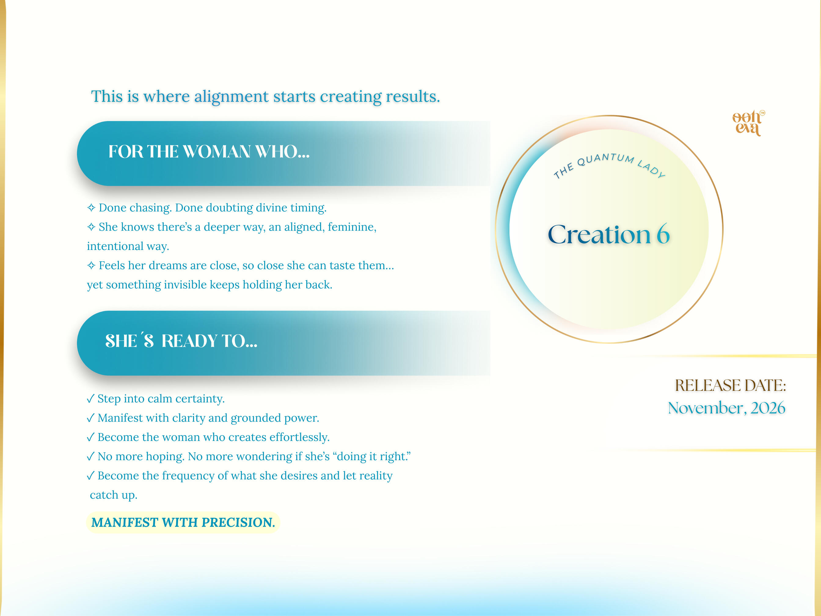 I’ve built this brand to guide women into the most magnetic, empowered version of themselves, the version they secretly dream of being.OOH-EVA was born from my own personal rebirth, a path paved with burnout, confusion, deep healing, and powerful reinvention.I know what it feels like to hold a big vision inside that doesn’t yet match your outer life.