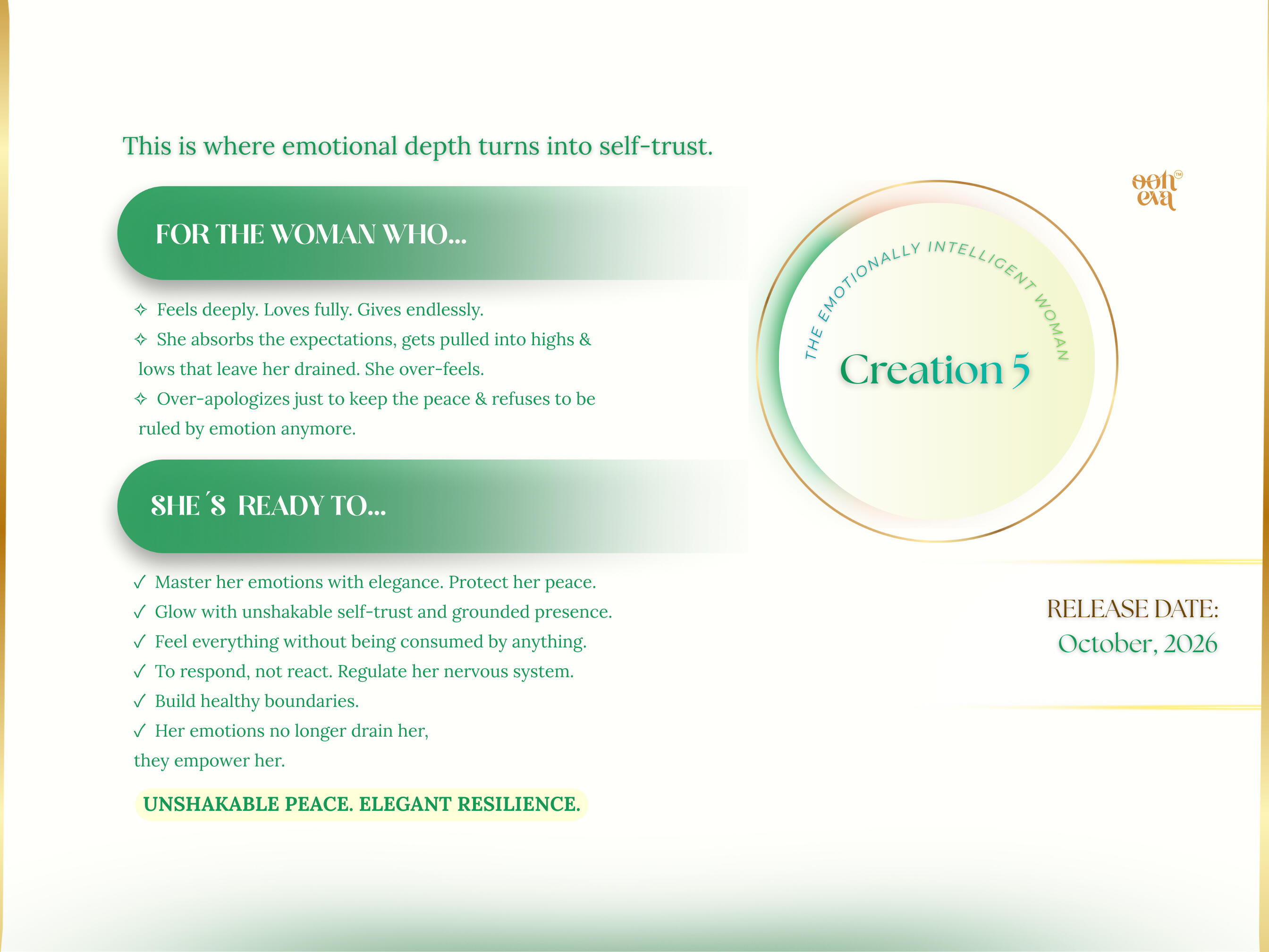 I’ve built this brand to guide women into the most magnetic, empowered version of themselves, the version they secretly dream of being.OOH-EVA was born from my own personal rebirth, a path paved with burnout, confusion, deep healing, and powerful reinvention.I know what it feels like to hold a big vision inside that doesn’t yet match your outer life.
