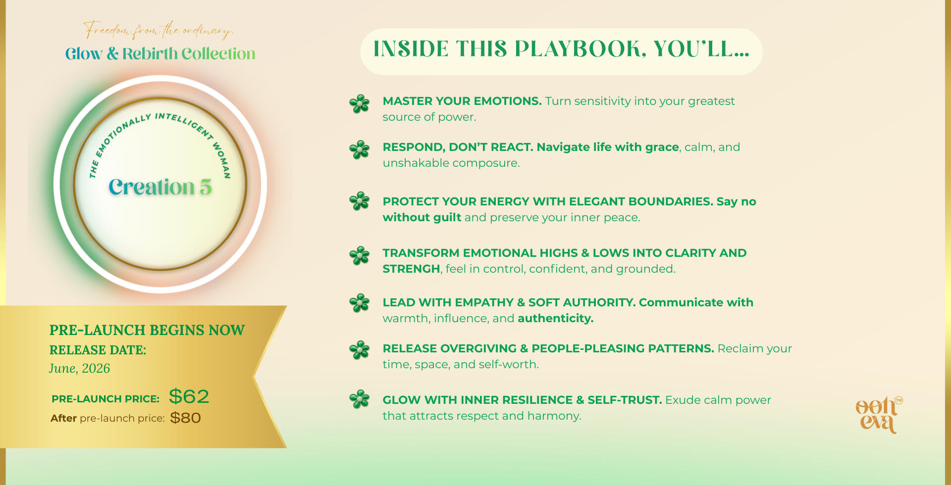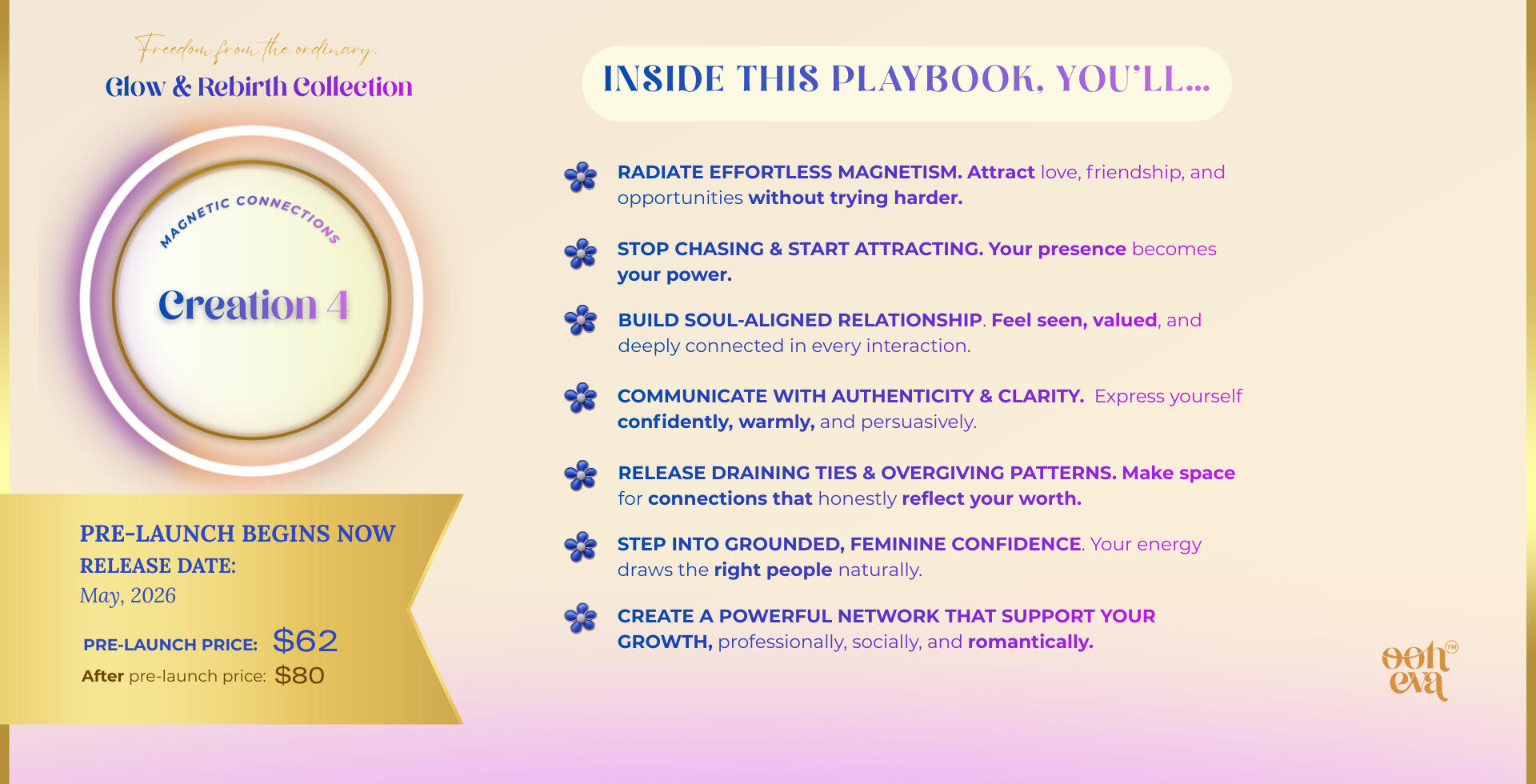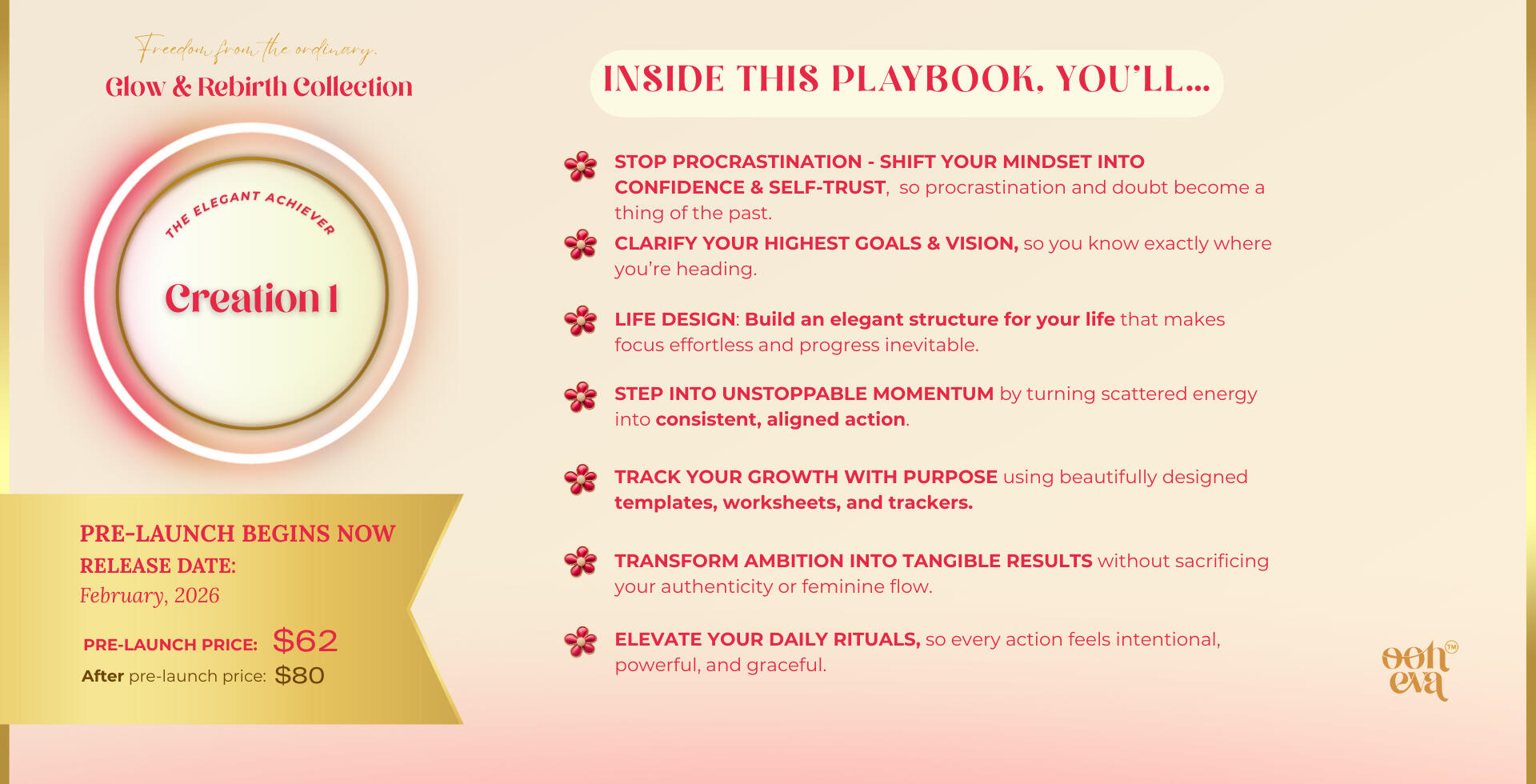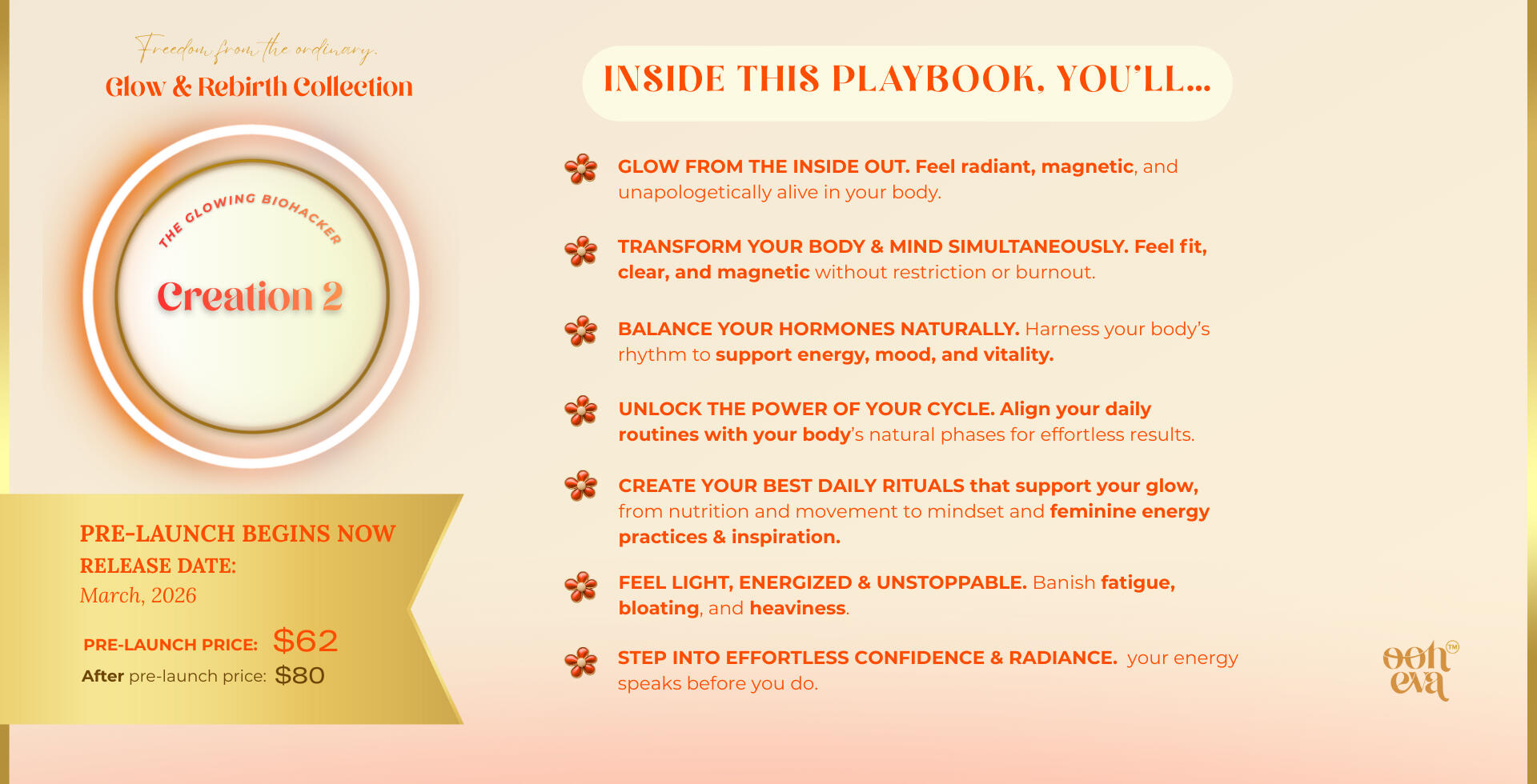 This isn’t just a brand. It’s a space for women ready to rise & transform.Through soulful digital creations, healthy + fun physical products, deep identity work and life design. I support ambitious, heart-led women in aligning their energy, essence, and everyday lives, authentically.OOH-EVA is freedom from the ordinary. It’s your invitation to live your unfiltered magic.Blending ancient feminine wisdom with modern tools, from nervous system healing and cycle syncing to mindset, quantum alignment and belief rewiring.